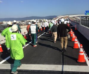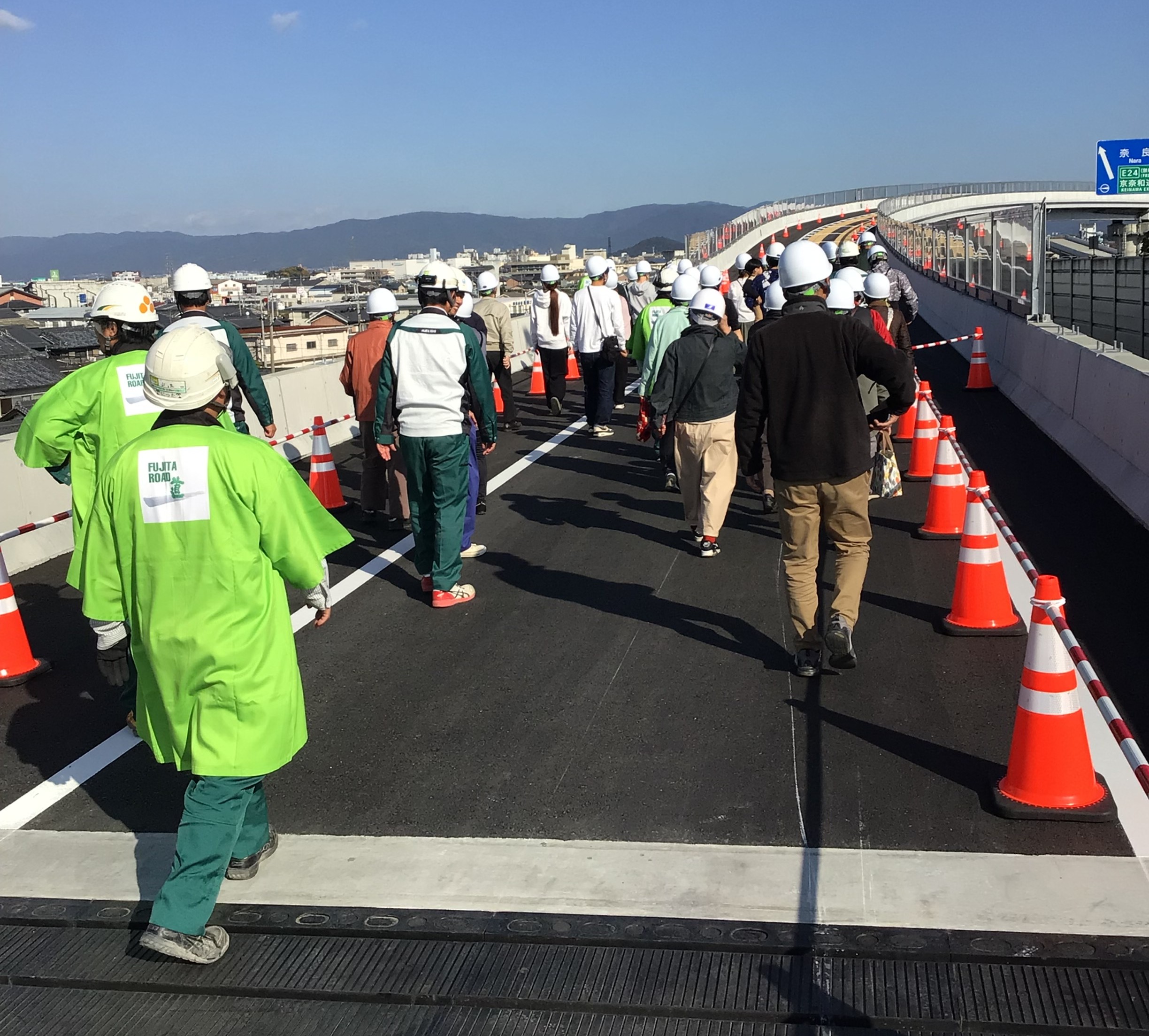 11月15日、地域住民の方々、総勢198名にご参加いただき、地域交流イベントを開催いたしました。 工事概要の説明を行った後、開通予定のランプ部を実際に歩いていただきました。 当日はお子様連れのご家族やご友人同士など、幅広い層の方々にご来場いただきました。